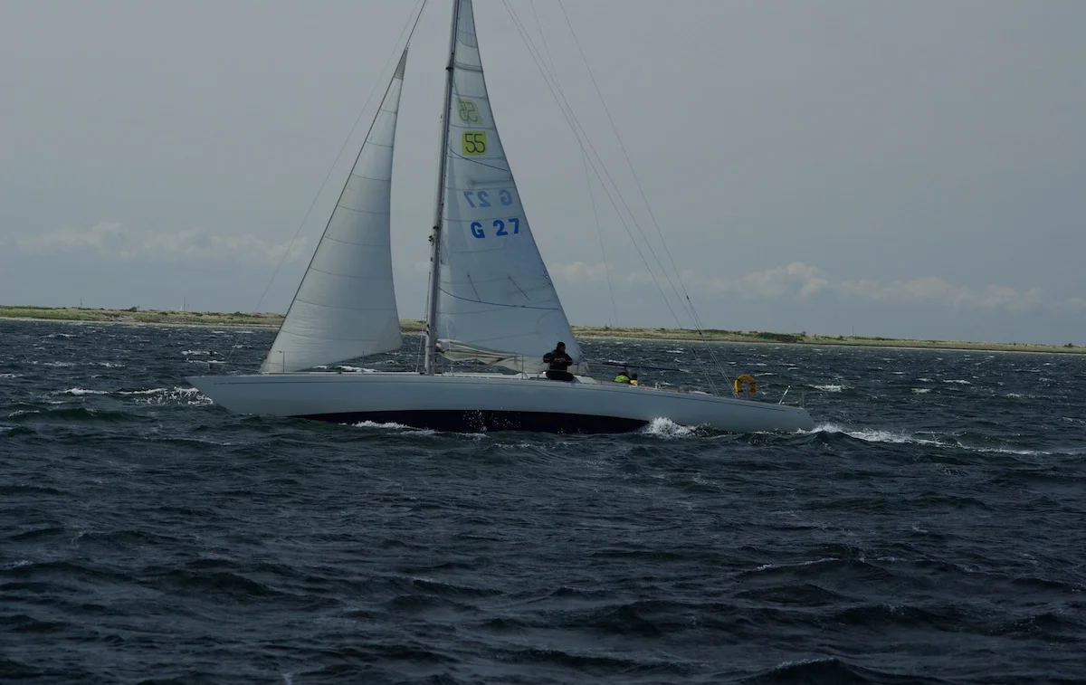 Bei zunehmendem Wind wird früher als bei üblichen Booten gerefft. Man braucht etwas Gefühl für das Schiff, findet im Lauf der Jahre heraus, was es mag und kann. Als schlankes Boot mit vergleichsweise wenig Anfangs- und großer Endstabilität krängt Gamle Swede früher. Da setzt das Boot bei Seegang mit der Flanke schon mal hart ein. Bei absehbar viel Wind ging Gamle Swede früher grundsätzlich mit der 15 1/2 m2 Sturmfock, neuerdings dem 20 m2 Yankee und ein- oder zweimal gerefftem Groß raus. Mit zweimal gerefftem Groß und Sturmfock waren wir zur ersten Schlank & Rank Regatta 2009 mit 41 m2 unterwegs.