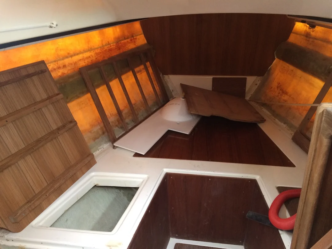Wir haben auch großen Sachen gemacht, im Lauf der Jahrzehnte drei Schotten aus Gamle Swede geschnitten und neue Bretter einlaminiert. Die erste Wand aus optischen Gründen Steuerbord zwischen Bad und Vorderkajüte, die zweite, weil es trotz langer Lecksuche vorn tropfte. Zu diesem seltenen schwedischen Kleinstserien-Werftbau gehören speziellen Lösungen, die ich erst nach einer Weile verstand. Dazu muss das Boot vor der Tür sein, das Problem eine Weile angeguckt und mit einem Segelfreund wie Uli behoben werden.